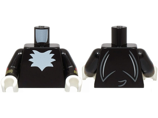 Torso with White Chest Fur and Light Bluish Gray Tail on Back Pattern / Black Arms with Red Cuffs and Gold Bracelets Pattern / White Hands