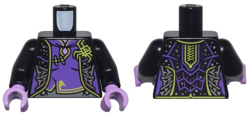 Torso Female Robe with Dark Purple and Lime Trim, Spider, and Silver Webs Pattern / Black Arms / Medium Lavender Hands