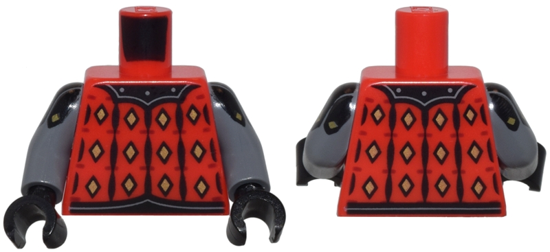 Torso Armor, Black Stripes, Gold Diamonds (Bat Lord Tunic) Pattern / Dark Bluish Gray Arms with Black Armor Pattern / Black Hands
