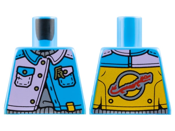 Torso Jacket with Lavender Panel over Silver Shirt, Red Dragon on Moon on Back Pattern
