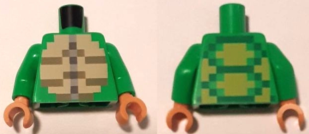 Torso Pixelated Olive Green, Tan and Light Bluish Gray Stomach, Lime and Green Shell on Back Pattern (Minecraft Turtle Skin Warrior) / Bright Green Arms / Nougat Hands