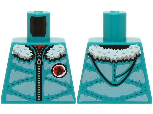 Torso Winter Jacket Padded with Hood, Metallic Light Blue Panels, Zipper and White Fur Lining Pattern (BAM)