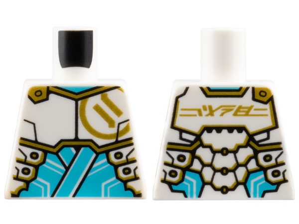 Torso Armor Plates with Gold Ninjago Logogram 'Z' on Front and 'ZANE' on Back over Medium Azure Tunic Pattern