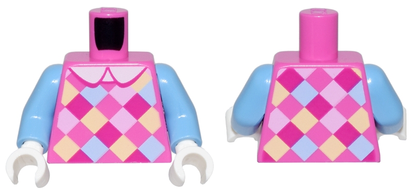 Torso Dress with White Collar and Magenta, Bright Pink, Bright Light Blue, and Bright Light Yellow Checkered Pattern / Medium Blue Arms / White Hands