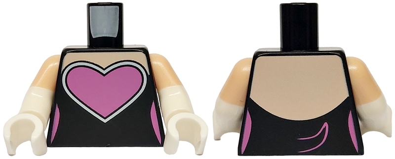 Torso Female Outline, Light Nougat Neck, Dark Pink Heart, Highlights and Tail Outline Pattern / White Arms with Molded Light Nougat Short Sleeves Pattern / White Hands
