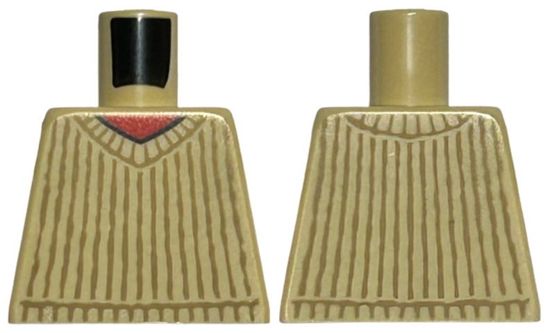 Torso V-Neck Sweater with Dark Tan Vertical Stripes over Red Shirt Pattern