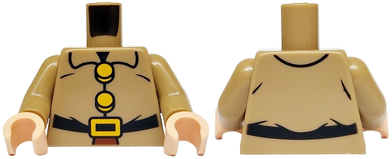 Torso Jacket with Collar over Reddish Brown Shirt, Black Belt, Bright Light Orange Buckle and Buttons with Lines Between Pattern / Dark Tan Arms / Light Nougat Hands