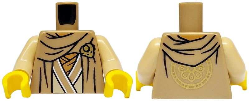 Torso Robe over Tan Tunic with White Hems, Medium Nougat Wraps, Gold Dragon Head, Hood and Flower Medallion on Back Pattern / Tan Arms / Yellow Hands