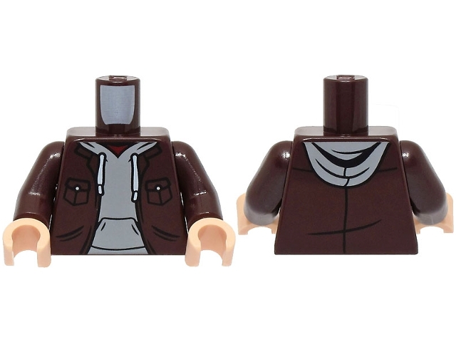 Torso Jacket Open with Pockets over Light Bluish Gray Hoodie and Dark Red Shirt Pattern / Dark Brown Arms / Light Nougat Hands