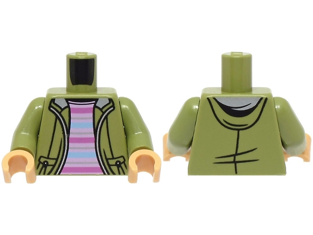 Torso Jacket Open with Hood over Bright Pink Shirt with Dark Pink and Bright Light Blue Stripes Pattern / Olive Green Arms / Medium Tan Hands