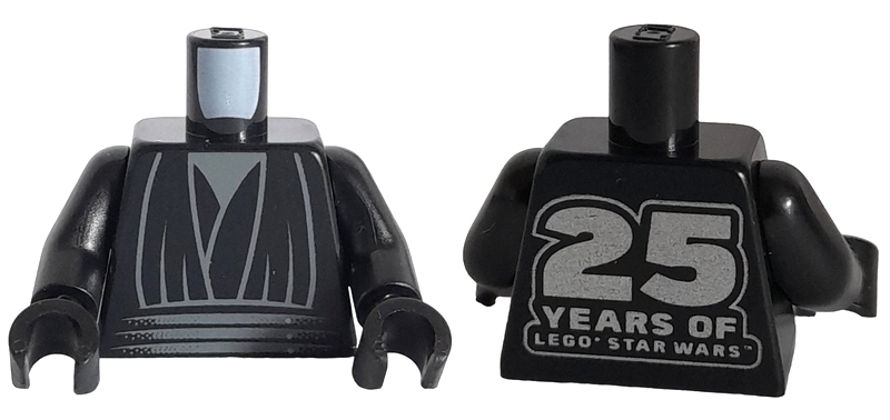 Torso SW Layered Shirt, Dark Bluish Gray Undershirt, Waist Sash, Silver '25 YEARS OF LEGO STAR WARS' on Back Pattern / Black Arms / Black Hands