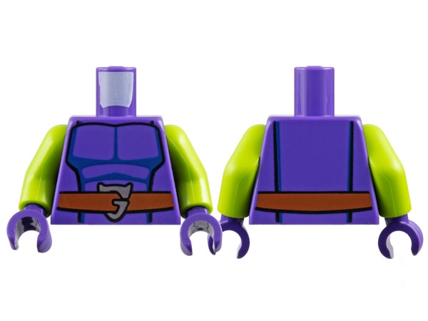 Torso Dark Blue Muscle Contours, Reddish Brown Belt with Silver Letter G Buckle Pattern / Lime Arms / Dark Purple Hands