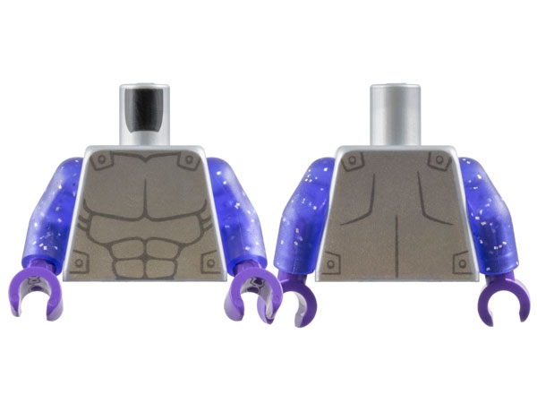 Torso Silver Armor with Dark Bluish Gray Muscles Outline Pattern / Glitter Trans-Purple Arms / Dark Purple Hands