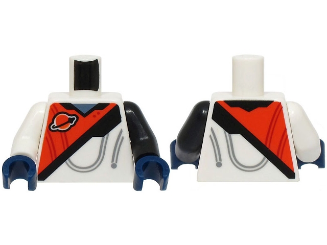 Torso Spacesuit with Reddish Orange Panel, Classic Space Logo, Black Stripe, and Sand Blue Collar Pattern (BAM) / Black Arm Left / White Arm Right / Dark Blue Hands