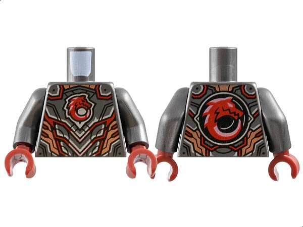 Torso Armor Plates, Red Wolf Head, Silver, Copper and Metallic Pink Lines and Trim Pattern / Pearl Dark Gray Arms / Dark Red Hands