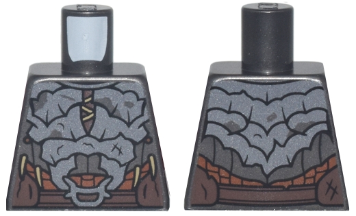 Torso Dark Silver Crude Plate Mail Armor, Dark Tan Laces and Spikes, Dark Brown and Reddish Brown Belts Pattern