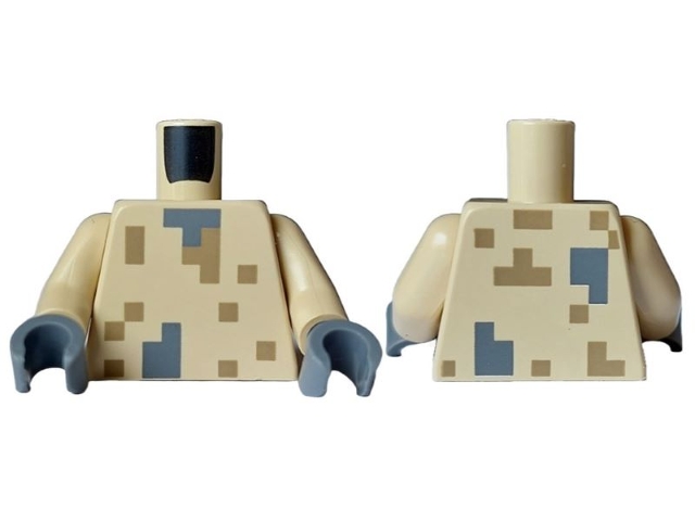Torso Pixelated Dark Bluish Gray Neck, Dark Tan Spots Pattern / Tan Arms / Dark Bluish Gray Hands