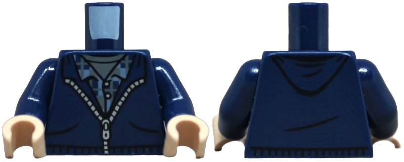 Torso Hoodie with Silver Zipper over Plaid Shirt and Dark Bluish Gray Undershirt Pattern / Dark Blue Arms / Light Nougat Hands