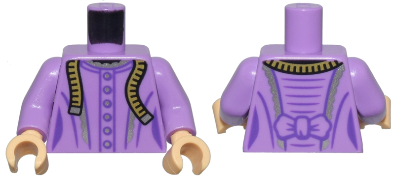 Torso Female Dress with Bow, Silver Trim and Buttons, and Yellow Cloth Tape Measure Pattern / Medium Lavender Arms / Medium Tan Hands