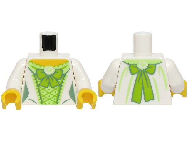 Torso Female Dress with Yellowish Green Corset, Lime Laces and Bow, Sand Green Wrinkles, Yellow Neck Pattern (BAM) / White Arms / Yellow Hands