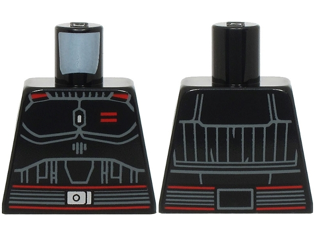 Torso SW Armor with Dark Bluish Gray Contour Lines, Belt with Silver Buckle, Red Highlights and 2 Stripes on Chest Pattern