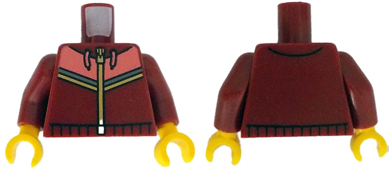 Torso Jogging Suit Jacket with Zipper, Drawstrings and Coral, Sand Blue and Gold Stripes Pattern / Dark Red Arms / Yellow Hands