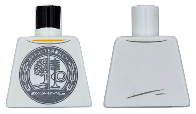 Torso Racing Shirt with Dark Bluish Gray Circle with Apple Tree, Stream, Cam, Valve and Spring, 'AFFALTERBACH' and AMG Logo, Yellow Neck Pattern