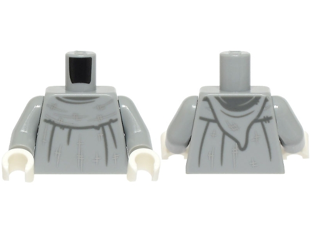 Torso Monk's Robe with Hood, Dark Bluish Gray Folds, Silver Lines and Marks Pattern / Light Bluish Gray Arms / White Hands