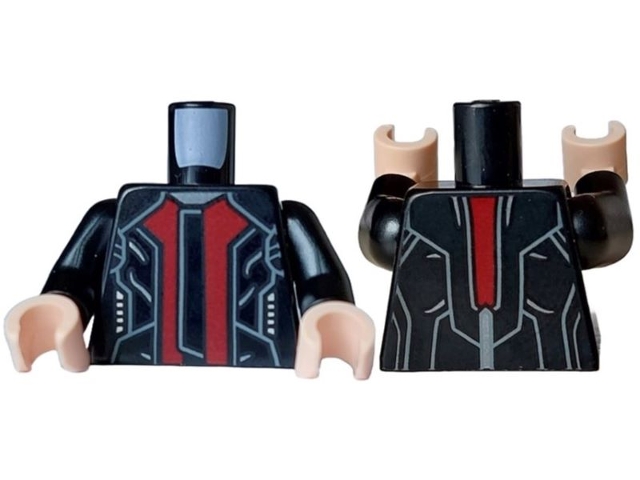 Torso Jacket with Dark Red Panels, Light Bluish Gray Outline and Silver Pockets Pattern / Black Arms / Light Nougat Hands