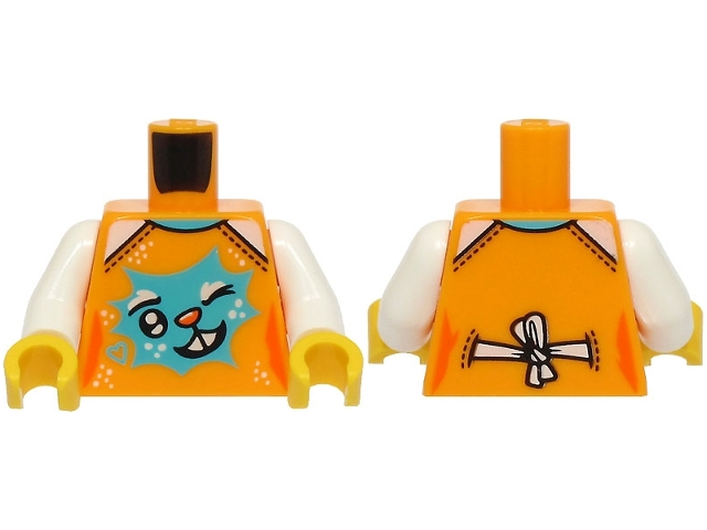 Torso Female Shirt with Medium Azure Heart and Winking Bunny Face with Orange Nose, White Bow on Back Pattern (BAM) / White Arms / Yellow Hands