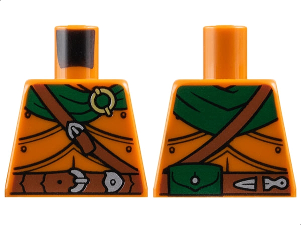 Torso Armor Plates, Dark Green Scarf, Gold Ring, Reddish Brown Belts, Silver Buckles, Pouch on Back Pattern