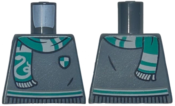 Torso Harry Potter Sweater, Green and Light Bluish Gray Slytherin Stripe, Shield, and Scarf with Snake Pattern