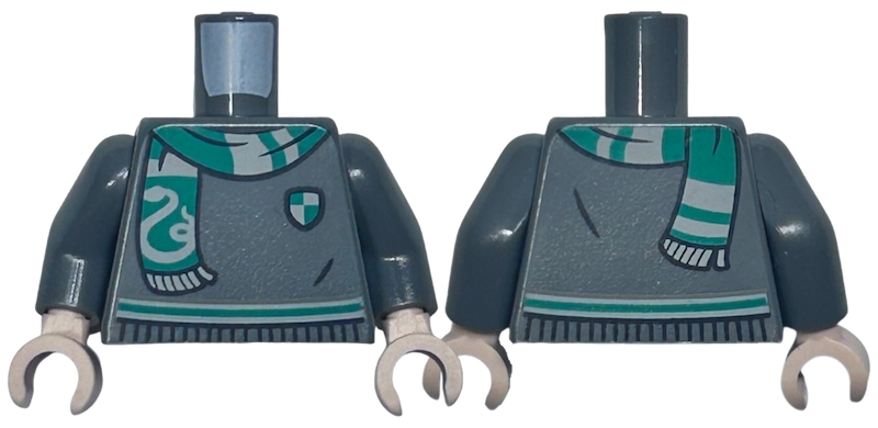 Torso Harry Potter Sweater, Green and Light Bluish Gray Slytherin Stripe, Shield, and Scarf with Snake Pattern / Dark Bluish Gray Arms / Light Nougat Hands