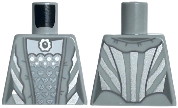 Torso Female Dress with Dark Silver Hearts, Silver Pendant, Dots and Stripes, Dark Bluish Gray Hem Lines and Creases Pattern