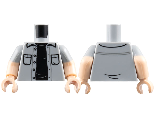Torso Button Up Shirt Open with Pockets over Black Shirt Pattern / Light Nougat Arms with Molded Light Bluish Gray Short Sleeves Pattern / Light Nougat Hands