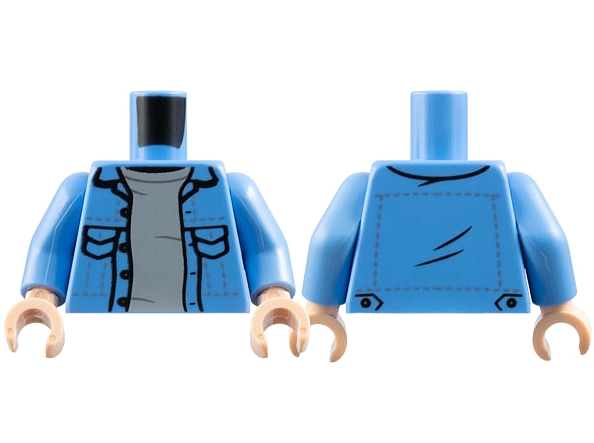 Torso Denim Jacket Open with Pockets over Light Bluish Gray Shirt Pattern / Medium Blue Arms / Light Nougat Hands