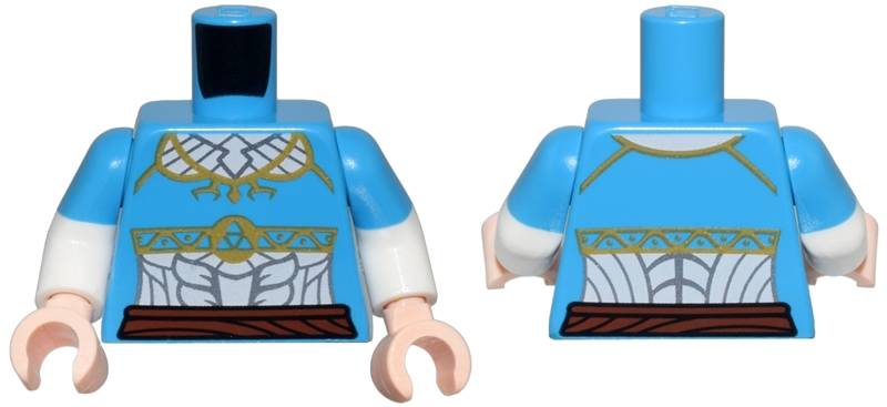 Torso Female Top with Gold Trim, White Tunic with Silver Embroidery, Reddish Brown Belt Pattern / White Arms with Molded Dark Azure Short Sleeves Pattern / Light Nougat Hands
