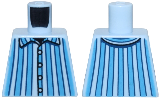 Torso Pajamas with Dark Azure and Dark Blue Vertical Stripes and Collar, Black Buttons and Neck Pattern
