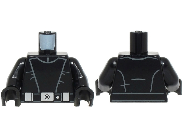 Torso SW Imperial Navy Trooper Uniform Jumpsuit, Large V-Shaped Panel, Belt with Silver Buckle, Dot and 2 Boxes Pattern / Black Arms / Black Hands