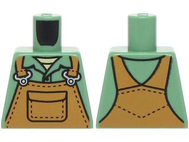 Torso Medium Nougat Overalls with Pocket and Silver Buckles over Shirt with Collar and Tan Undershirt Pattern