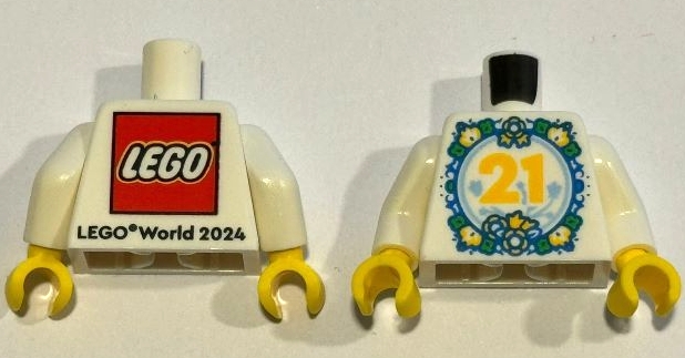 Torso LEGO World 2024 with Number 21 in Circle with Flowers and Leaves Pattern / White Arms / Yellow Hands