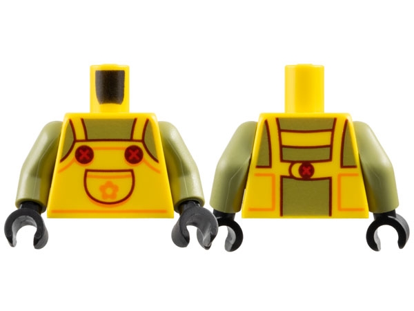 Torso Overalls with Pocket, Olive Green Chest, Reddish Brown Lines and Buttons, Orange Trim and Flower Pattern / Olive Green Arms / Black Hands