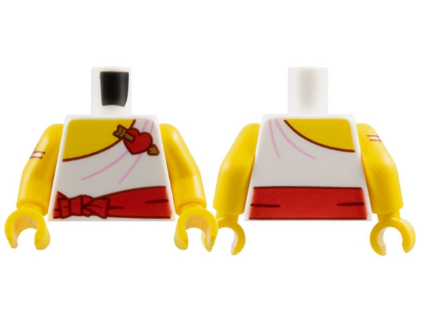 Torso Toga with Yellow Chest, Red Sash and Heart with Gold Arrow, Dark Red Outline and Bright Pink Folds Pattern / Yellow Arm Left / Yellow Arm Right with Gold and Reddish Brown Twisted Upper Arm Bracelet Pattern / Yellow Hands