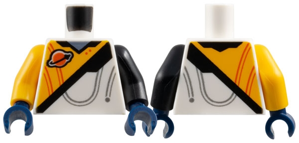 Torso Spacesuit with Bright Light Orange Panel, Classic Space Logo, Black Stripe, and Sand Blue Collar Pattern / Black Arm Left / Bright Light Orange Arm Right / Dark Blue Hands