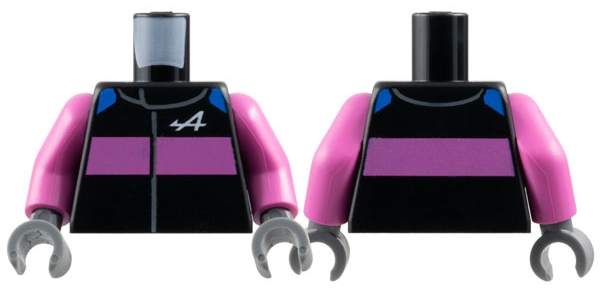 Torso Racing Suit with Blue Shoulders, Dark Pink Stripe and Alpine Formula 1 Logo Stylized White Capital Letter A Pattern / Dark Pink Arms / Dark Bluish Gray Hands