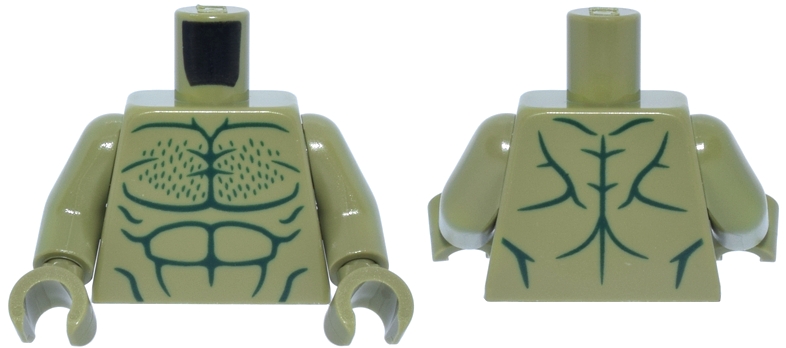 Torso Bare Chest with Dark Green Muscles Outline and Chest Hair Pattern / Olive Green Arms / Olive Green Hands