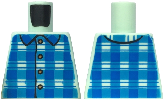 Torso Blue and Dark Azure Plaid Shirt with Collar and Medium Nougat Buttons Pattern