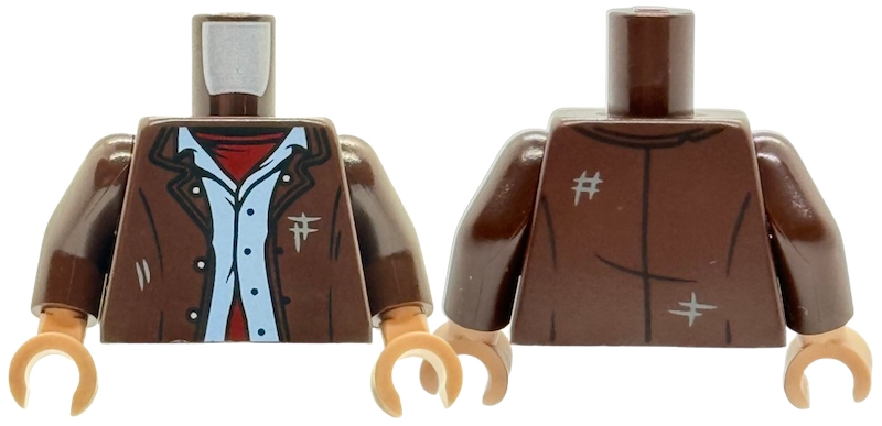 Torso Jacket Open with Buttons and Scuff Marks over Bright Light Blue Shirt and Dark Red Undershirt Pattern / Dark Brown Arms / Light Nougat Hands