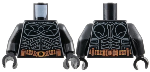 Torso Batman Suit with Dark Bluish Gray Bat, Panel and Muscles Outline, Copper and Medium Nougat Utility Belt Pattern / Black Arms / Black Hands