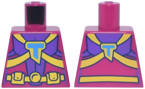Torso Female Flight Suit with Dark Purple Panels, Yellow Harness Straps with Dark Azure Capital Letter T, Utility Belt with Pouches Pattern